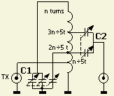 Example of calculation: suppose you have a coil with a small diameter and 30 turns, the first tap is at 30 ÷ 5 = 6 turns, the second tap: (2 × 30) ÷ 5 = 12 turns and the third tap: (3 × 30) ÷ 5 = 18 turns.