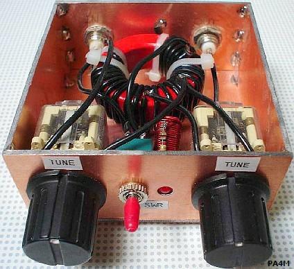 PA4M made the design with a built-in N7VE SWR indicator so that no separate SWR meter was needed. He uses his FRI-match with a DIY 30 m CW transceiver. He has not yet been able to test the efficiency of the tuner, but matching is very smooth. The toroidal core is a T158-2 because it happened to be present unused.