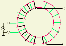 Before winding, several layers of Teflon plumbing tape must be applied to the core, to insulate it from the coil-windings. Another method of insulation is to cement two flat isolating washers (e.g. made from bare glass fibre board, see figure) on each side of the bare core. Apply a small quantity of super glue, possibly only a few drops, around the sides of the core. Work swiftly; the glue hardens quickly. The glue prevents the washers from moving out of alignment while the core is being prepared for winding. For a T200-2 core, the inner diameter should be 28 mm and the outer diameter 55 mm. With this last construction it might be even possible to use bare copper wire for the windings.
