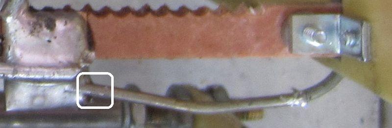 Gelukkig is een verbetering mogelijk. Onderbreek de verbinding van het sleepcontact naar de rolspoel en verleng de draad zoals met rood op de foto is ingetekend. Nu is er meer spoel en minder bedrading op de hogere banden en voor een grotere zelfinductie moet de rolspoel met de wijzers van de klok mee gedraaid worden zodat de teller "normaal" werkt.
