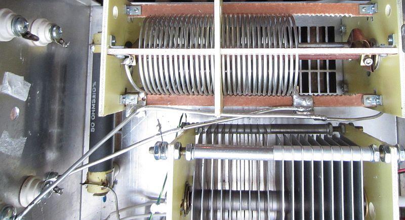 Om de balun te monteren was er genoeg plaats boven de rolspoel met voldoende afstand tot de bovenkant van de metalen kast. De koperloze epoxy plaat werd met behulp van een lijmpistool aan de opstaande platen van de rolspoel vastgemaakt. Op zich is dat al stevig genoeg, maar de 6 mm² montagedraden houden de boel extra op hun plaats. Het een en ander zorgt ervoor dat de verbinding met de andere componenten zo kort mogelijk gehouden is.