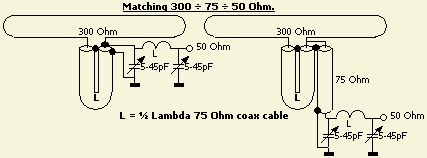 Een gevouwen («fig) dipool voor 2 m kan via een ½ Golf coaxkabel met het pi-filter aangepast worden aan een 50 Ohm systeem.