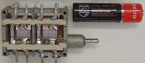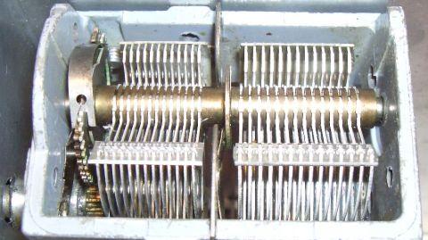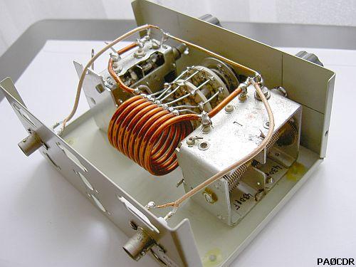 Two section broadband capacitors (fig») with a build-in reduction were used. These can still be found new and on hamfests. Do not pass them up because you think the gap between the plates is not sufficient. The gap in my capacitors is rather small and the capacitance value is 380 pF per section.