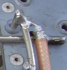The inductors has been constructed from ordinary unshielded # 10 wire (2.5 mm²) which normally (in NL) is used for grounding purposes in the mains wiring. Six windings with an inside diameter of 1 1/14 " (3cm «fig) are generally sufficient. For me 5 windings were sufficient and the rest of the inductor was shorted.