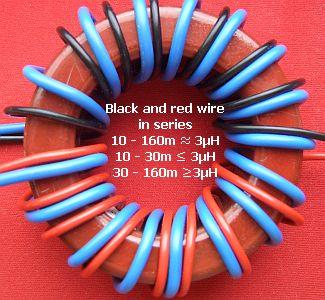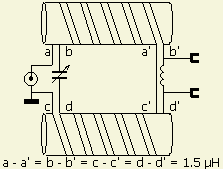 The rule-of-thumb for the windings is: ATU for 10 – 160 m: (a-b) = (c-e) in series with (f-d) ≈ 3 µH ATU for 10 – 30 m: (a-b) = (c-e) in series with (f-d) ≤ 3 µH ATU for 30 – 160 m: (a-b) = (c-e) in series with (f-d) ≥ 3 µH |