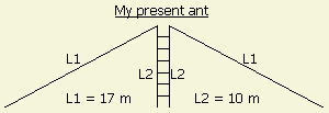 Als Antenne verwende ich hier eine 2 × 20 m Dipol symmetrisch mit 240 Ohm Schlauchkabel (Antennenkabel für UHF-Fernsehantennen aus den 70er Jahren) gespeist. Antenne hängt zwischen 15 m und 9 m über Grund.