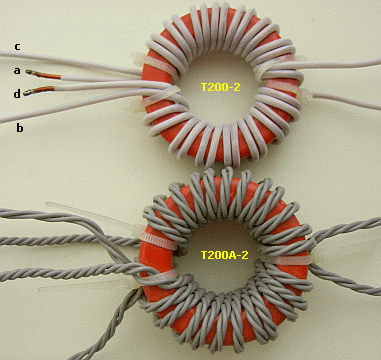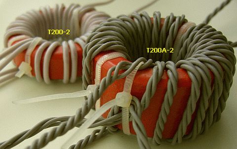 Transformers made with Amidon toroids. The T200A-2 toroid is a nearly exact substitute of two T200-2 units sandwiched together.