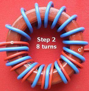 The windings should provide high-voltage insulation by using Teflon covered wire. Another option would be to use RG58 coax cable with the outer isolation and screen stripped off. Do not twist the wires of the primary windings with the wires of the secondary windings. In the picture (see fig») the light blue with the blue wires.