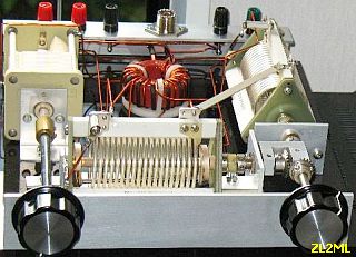Abgesehen von der Wirkung an meiner Antenne, zeichnet sich der Koppler durch seine absolute Einfachheit aus. Der jetzt von mir aufgebaute kleine Koppler (fig») beinhaltet neben dem Ringkern einen Drehko (439 pF) von lediglich 1.5 mm Plattenabstand und eine relativ kleine Rollspule (28 µH) a la Annecke. Im abgestimmten Zustand sind 100 W HF absolut kein Problem. Die zusätzlich schaltbaren Kondensatoren werden an einer 2 × 20 m langen Antenne nicht benötigt, bei mir zuhause allerdings doch. Im 80 m Band brauche ich 1100 pF, wenig L und auf 160 m reicht der Drehko neben 21 µH der Rollspule. Es funktionieren übrigens alle Bänder von 160 bis 10 m einwandfrei.