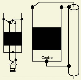 The feeding point of this antenna system is symmetrical and to feed it with coaxial cable one must use a choke balun or line insulator.