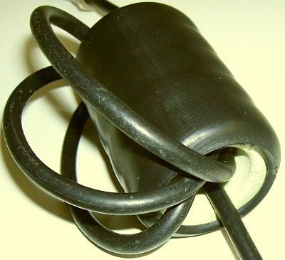 Hoewel mijn 5 banden vertical op een mast (fig») in het voedingspunt al een ferriet mantelsmoorspoel heeft, gebruik ik het getoonde model op een PVC pijp zelfs binnenshuis (direct na de doorvoer) als extra maatregel tegen storing. Een aantal geschikte ringkernen op elkaar met de kabel een paar keer er doorheen gevoerd werkt ook goed. Test wel of de kern niet warm wordt met maximaal zendvermogen.