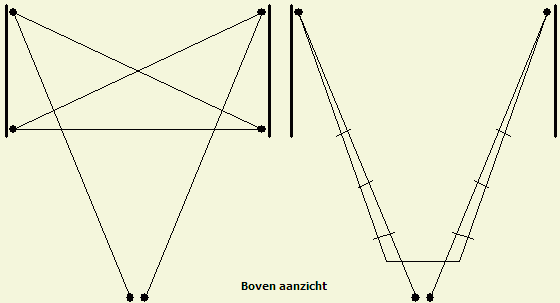 De lengte van de antenne tussen de twee afspanpunten is precies