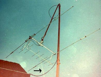 PE1NBD maakte ook zelf de linkse («fig) constructie als statief voor een 11-element