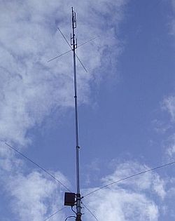 Een mast met antennes aan de top (fig») kan zeer goed dienen als verticale antenne voor de lagere banden. De andere antennes die er erop staan werken als capacitieve "top loading" waardoor de mast elektrisch gezien langer lijkt. Het aftakpunt om een voedingslijn aan te koppelen hangt af voor welke band de antenne bedoeld is, maar men kan voor bij voorbeeld de