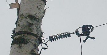De huidige antenne ook met trekveren afgespannen. Door de trap is het een hele golf antenne op 20 m.