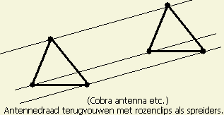 De voordelen van dit symmetrische systeem zijn: - Eenvoudig zelf te maken. - Goedkoop. - Geschikt voor alle banden. - Minimale verliezen. - Veroorzaakt minder storing op radio en TV. - Is zelf minder gevoelig voor storingen uit de omgeving. - Minimale windbelasting. - Niet zo opvallend in een woonwijk. |