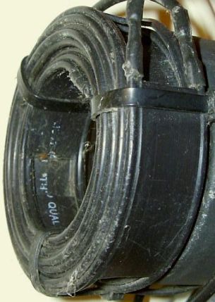 Een methode die hier toegepast wordt en al meer dan 30 jaar zijn nut bewezen heeft, is het vastmaken met binddraad. Daarmee wordt het geïsoleerd draad niet beschadig. Door de flexibiliteit van de isolatie blijft de bevestiging behouden. Tot noch toe hebben deze verbindingen alle stormen doorstaan. Het binddraad is een met was geïmpregneerde (glasvezel?) draad dat vroeger onder andere bij de voormalige PTT in gebruik was. De toegepaste knoop of lus heb ik destijds afgekeken van een sportvisser die daarmee zijn haakje aan de lijn vastmaakte. De knoop zal vast wel bij de marine of scouting een naam hebben.