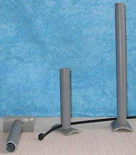 In het pijpje vlak boven de bevestigingsstrook een 5 mm gat door en door boren. Hierdoor de tyrap steken en de afhouder om de mast of pijp vast zetten. Ook aan het uiteinde een gat, hier wordt ook met een tyrap de voedingslijn mee vast gezet.