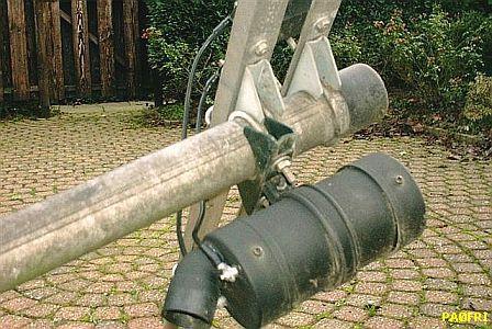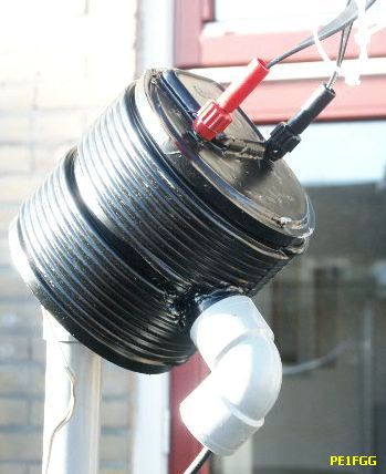 Het grotere model op een PVC buis van 16 cm doorsnede werd in een later stadium voor een vriend gemaakt. Het kleine model heeft een eigen zelfinductie van 33 µH parallel aan de voedingslijn en dat is bij het grotere model ongeveer 60 µH.