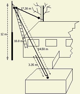 Bij mijn huidige inverted V antenne (fig») waren de ingebouwde tuner van een TS-450 en de externe automatische tuner van een TS-50 in staat om de antenne op alle banden van 10 tot en met 80 m aan te passen.