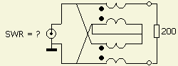 De SWR aan de ingang van zo'n balun zal over het algemeen een lage waarde vertonen als de uitgang wordt afgesloten met een inductievrije weerstand van 200 Ω. Bij de balun was, ondanks een zo goed mogelijke constructie, de SWR betrekkelijk hoog toen een 200 Ω weerstand met 2.5 cm lange aansluitdraden aan de uitgang werd bevestigd. Het laagst was SWR = 1 bij 2.5 MHz en het hoogst SWR = 5.6 bij 15.08 MHz.