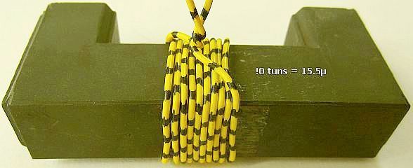 With two components 'power' adhesive, four cores were bonded together as a rectangular 'ring core'. Then equipped with 2 × 15 windings fairly thin Telon wire. The inductance was about 200 μH and with 500 W transmission power the cores remained stable, only the thin wire became hand warm. That gave courage and because three C-cores are left, two were used to add another rectangle.