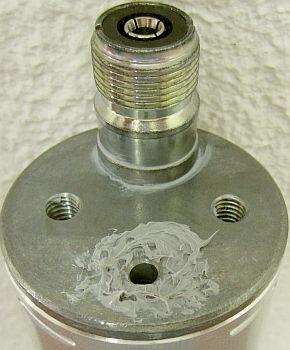 Another point of leakage and electrolysis or oxidation is the connection of the brass coupler installed at the bottom of the middle aluminum antenna rod. Acid-containing rainwater collects in the (clearly visible fig») gap, causing a chemical reaction between brass and aluminimum. The result of the damage can be seen on the image of EI4DIB («fig).