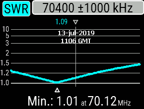 It tunes really well within the 4 m band and the SWR at the band limits is below SWR = 1.2.