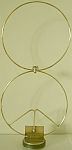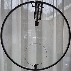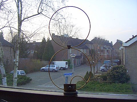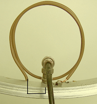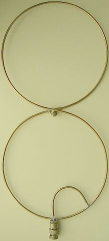 The double-loop (15.5 cm diameter) was shaped from a 1 m length of 3 mm diameter brass welding rod. Using thicker copper tubing may increase the efficiency. A can with an approximate diameter of 12 cm makes a good bending jig. The loop was closed at the crossover by soldering the rod ends into a 2 cm long tube with an inner diameter of 3 mm.