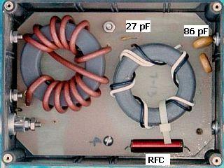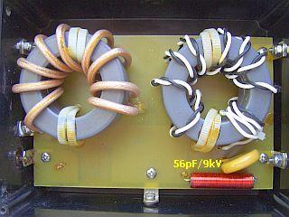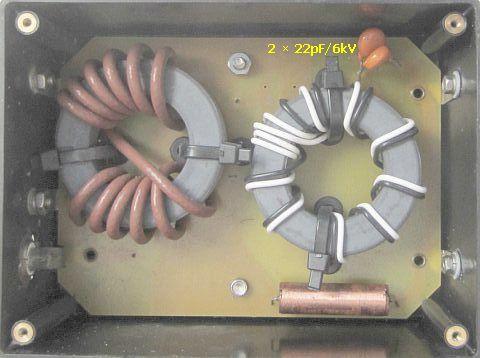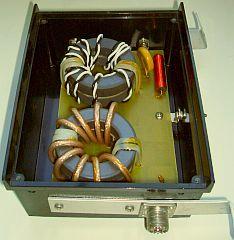 Ook dit matching network werd via eBay verkregen. Tussen de choke balun en auto transformator werd weer een 27 pf condensator parallel geschakeld zoals dat ook was bij een R5. Deze condensator is waarschijnlijk toegevoegd om de SWR op de 10 m band te verbeteren. De choke balun is uitgevoerd met 2 ringkernen op elkaar en de auto trafo heeft 1 dikke kern. Gezien de rode kleur is het vermoedelijk een T200-2 type.