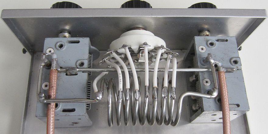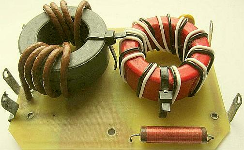 Choke balun (bruine draad) en 1 : 4.84 trafo (witte en zwarte draad).