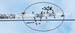 Na ingebruikneming ging de SWR op één band geleidelijk achteruit en later ook op een aantal andere banden. Tenslotte werd met weinig animo de antenne nog maar weer omlaag gehaald om de oorzaak op te sporen. Tussen een spoel en krimpkous was water gekomen. Bij mijn eerdere controle waren kennelijk een paar haarscheurtjes aan de aandacht ontsnapt. De spoel was gewikkeld op een vorm met groeven en de draad was op een paar plaatsen gefixeerd met (vermoed ik) tweecomponentenlijm. Tussen krimpkous en spoel was een op contactlijm gelijkende substantie aangebracht. De krimpkous werd verwijderd, de spoel gereinigd met thinner en de spleet tussen spoelvorm en buis opgevuld met twee componenten lijm. Over spoel en uiteinden van aluminium buizen werd contactlijm aangebracht en daarna met krimpkous overtrokken en («fig) met een elektrische verfbrander verwarmd. Het resultaat van de reparatie is duidelijk op de foto te zien.