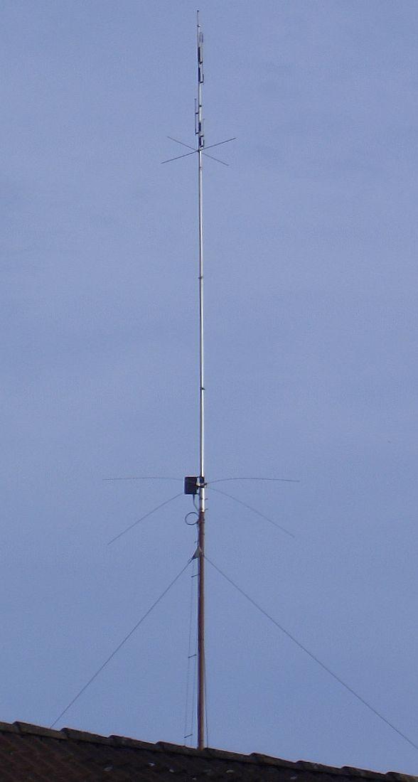 Toen alles weer keurig op een mast gemonteerd was, bleek de antenne niet te werken, SWR = ∞! Nader onderzoek wees uit dat de 27 pF condensator een kortsluiting veroorzaakte.