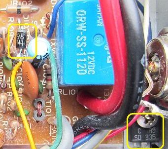 Voor de montage wordt één kant van diode D102 losgeknipt en aan de andere kant de draad naar de basis van de TO-220 transistor gesoldeerd.