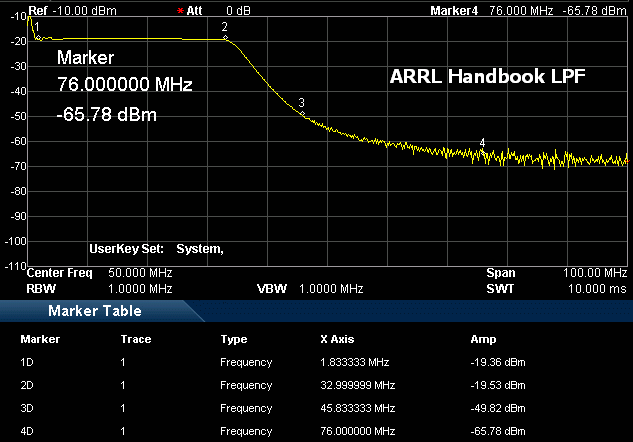 For comparison, a (fig»)" standard "LPF filter was reconstructed according to many older ARRL handbooks.