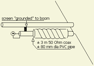 Een choke balun werkt effectiever als de afscherming geaard (ontkoppeld) wordt volgens de tekening.