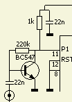 Er is in mijn gewijzigde ontwerp een extra 10 kΩ weerstand van pin 6 naar aarde toegevoegd. De 2.2 μF condensator behoudt vrij lang zijn lading als de set tijdens experimenten veelvuldig aan en uitgeschakeld wordt. De weerstand versnelt de ontlading. In bedrijf moet de schakeling dan meer zijn best doen om de spanning voor de varicap diode constant te houden en dat verbetert (volgens mij) de stabiliserende werking.