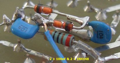 Om zo veel mogelijk draadeinden in het meetcircuit kort te houden werden 3 × 100 pF («fig) vervangen door SMD 3 × 50 nF. Dat was mechanisch niet stevig genoeg en daarom werden in een later stadium de SMD's weer vervangen door een klein formaat 3 × 100 nF "gewone" condensatoren. Naast de BNC connector werd de aan-uit schakelaar gemonteerd. Dat was onder andere gedaan om de schakelaar door het langere BNC chassisdeel te "beschermen" tegen ongewenst inschakelen.