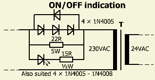 When the switch closes, the 7805 stabilizer is supplied by the rectifier with paralleleled elco. The 7805 is connected as a constant 11 mA current source by the 470 ohm resistor. The current causes the LED to light up so that the triac starts to conduct. Simplicity itself, but to make the circuit work, a three-wire cable is required. That is missing in a WTCP, but is standard with a WTCP-S!