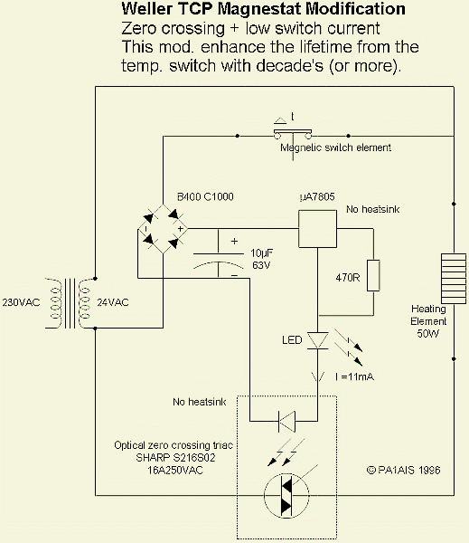 The station has been working for me for 25 years without fail. I found one objection that you could not see whether the soldering iron was already at temperature. A simple (fig») and not unknown circuit ensures that the light (LED) goes out when the correct temperature is reached