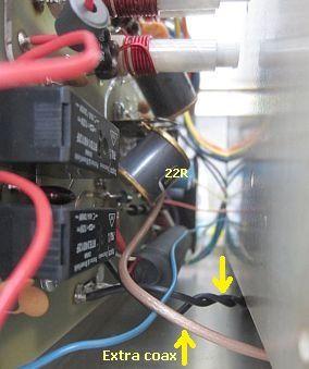 Zonder deze verandering kon op 24.9, 28 en 29 MHz geen gelijke output verkregen worden. Dat werd mogelijk door de aangebrachte coaxkabel.