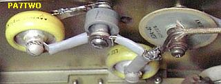 That explains the common problem of failed ceramic disc capacitors next to the tubes. They crack or break by overheating shortcut is also commonplace. Links you can see how a defective copies PA7TWO has replaced by more modern types. On the left shows how PA7TWO has replaced faulty capacitors by more modern types.