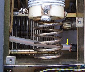 The best is to cut the short wires at the top and bottom VC1 so that HF current only can flow through the new wire or (fig») coax cable.