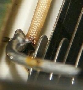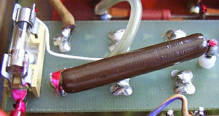 A defect tube can have various causes such as the absence of the previously described security, tuning to the wrong band or working without a load. An amplifier was investigated and showed a repaired choke, apparently the RFC also burned due to a defect tube. To restore the previous owner had removed the damaged windings, a section rewound and then the loose ends soldered together. The coil becomes a false resonance in the 12 m segment making it virtually impossible to obtain some output on that band. By applying additional windings of thin (Teflon) insulated wire, I shifted resonance and the output on the 12 m band increased to the usual value.