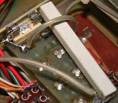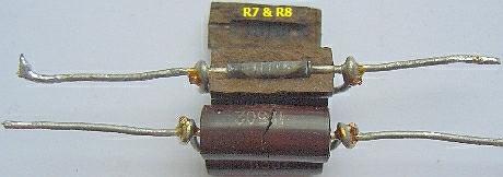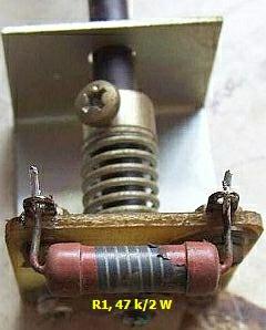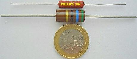 A blackened resistor needs to be replaced. The vintage (fig») non-inductive carbon composition resistor is no longer manufactured and hard to find and a modern equivalent are 3 W brown Philips in values from 22 to 470 Ohm. Most shops have («fig) the smaller 1.2 W version in stock. Make sure to ask for the 3 W ones. Mount the resistor next to the coil, not inside it. Eventually mont 4 × 220 Ohm/1.2 W in parallel.