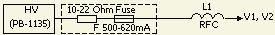 Protection circuit: 1 glitch resistor + 1 fast fuse |