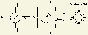 If something in the HT supply goes wrong then meters may be damaged. Often no replacement is available. Suggested is to protect all panel meters with back-to-back connected diodes. Bridge rectifiers are very suitable too. In addition decouple with some 10 – 22nF capacitors because modern high voltage diodes can work well into the HF region. |