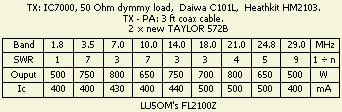 As expected LU5OM's experiments with the neutralization shows that transmitting power and input VSWR was affected by the setting of TC2. Tuning was according to the manual with a dip at 10 m. The output could only be achieved with an additional tuner between IC7000 and FL2100Z.