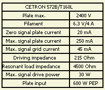 Several reports point out that the Svetlana tubes with their higher µ are not very suitable for HF. Apparently these were designed for LF amplifiers. On the photo you can see that the anode is considerable smaller in size than another manufacturer’s "normal" 572B. The anode dissipation of the Svetlana is subsequently smaller.