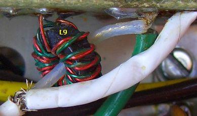 Although separate chokes can be used, the filament choke RFC1 has a bifilar winding (double solenoid) 1.8 mm diameter enamelled wire wound on a 10 cm long, 9.5 mm diameter ferrite rod from a broadcast AM radio. While the wire size might appear to be too thin for 14 A filament current, it serves also to provide a resistance to limit switch-on inrush current.